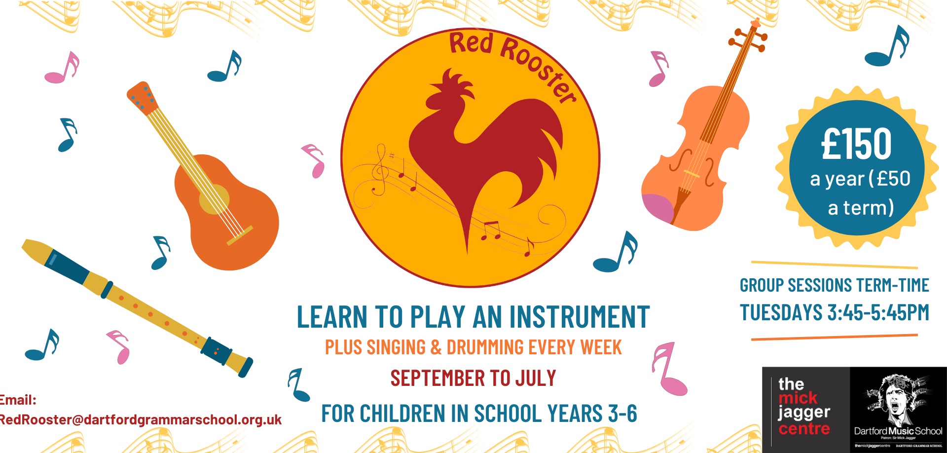 The Red Rooster Project is based in the Mick Jagger Centre, and is generously funded by Sir Mick Jagger. We provide music tuition for 30 weeks in the academic year.